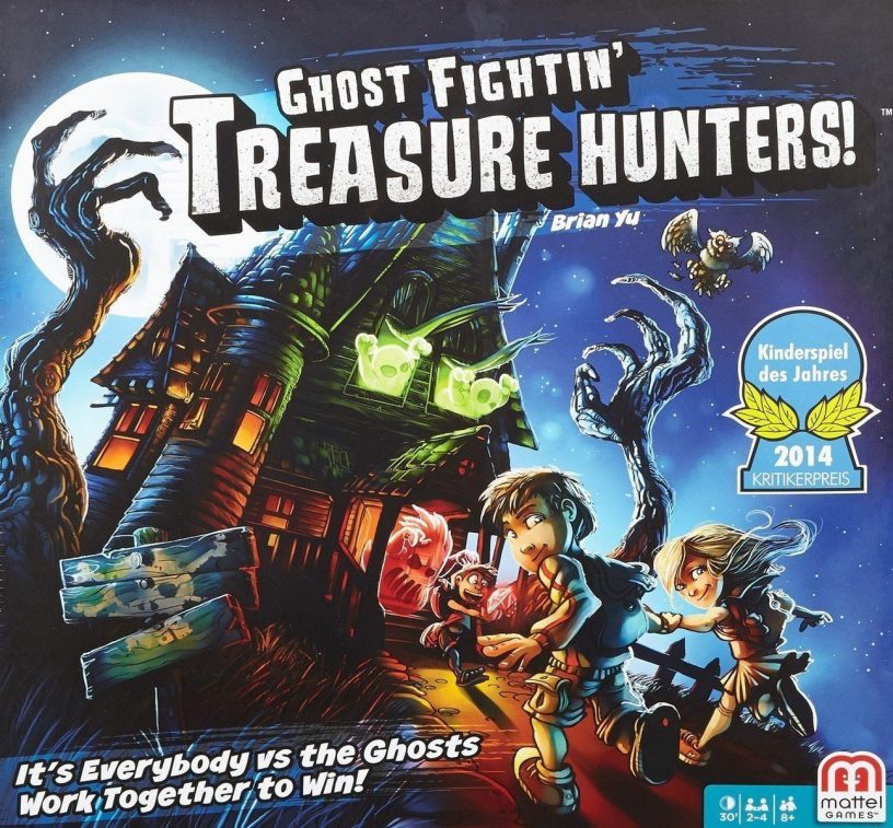 This is a great cooperative family game for ages 5 and up. The components are awesome, the ghosts are adorable (not scary), and the little ghost meeples fit on the tips of my sons fingers for added fun. Playtime is quick and doesn’t exceed my son’s attention span. It scales well with player count and even has more advanced rules for when things get too samey or easy. Highly Recommended!