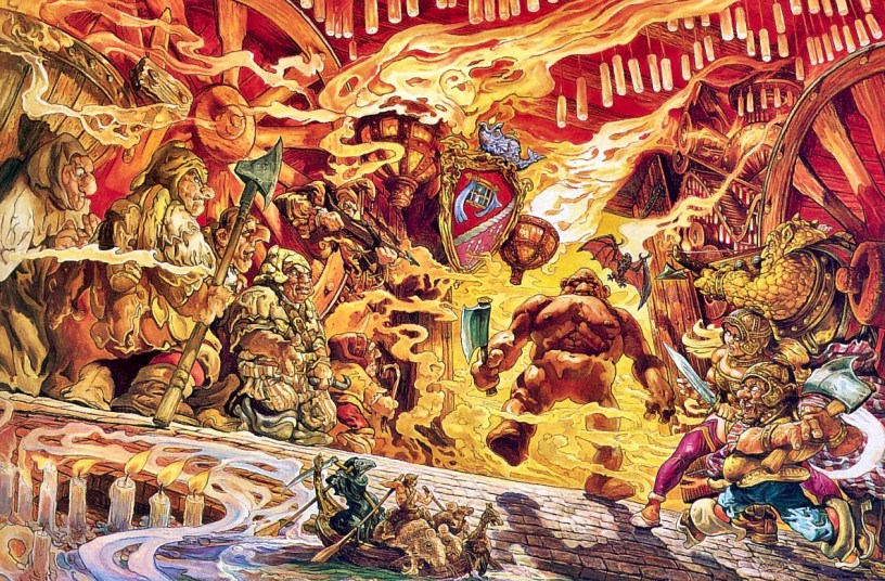 Meanwhile in the sewers below, an irascible gnome, Wee Mad Arthur just wants to be left alone, kill some rats, and earn his pay by selling them to the various inns and tarverns of Ankh-Morpork. Though he’s the best ratcatcher in the city, he is not a member of the Ratcatcher’s Guild. He’s just fiendishly strong and small enough to follow the rats wherever they go. Things start to go south for all concerned when the Ratcatcher’s Guildmaster uses his baton to impatiently swat a stray dog who just happens to be Wee Mad Arthur’s primary mode of transportation around the city.
