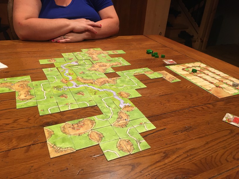 Nostalgia isn’t the word. It’s like I was teleported back to when we bought our first house, when we were just married and it was just the two of us, when we used to play Carcassonne every single night after dinner, never even bothering to put the game back in the box. She picked up right where she left off, too — my fiercest opponent. It didn’t take her 3 turns to start fighting me over the big farm. We traded blows and kept the tension high right to the final scoring.