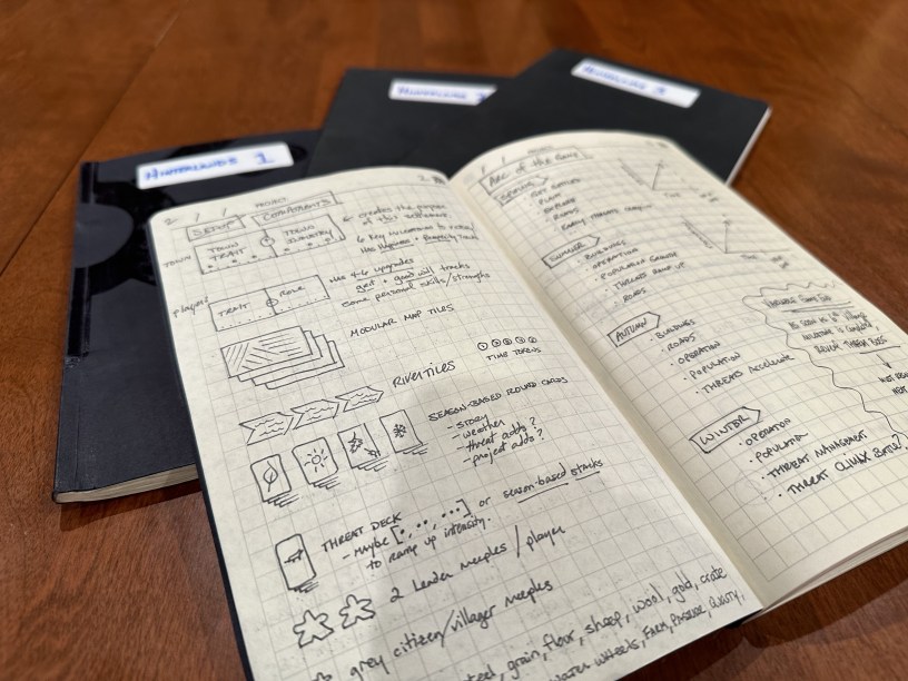 We didn’t really talk about it much after that. A couple years went by and I was casually jotting down game ideas in a text file as they popped into my head. Then I went to PAX Unplugged in 2019 and played Everdell. When was the last time I complained about Everdell to you? Man! I found Everdell to be so disappointing that it lit a spark in me that hasn’t diminished in the slightest — that notion that I could solve my own problem and make the game I wanted Everdell to be.