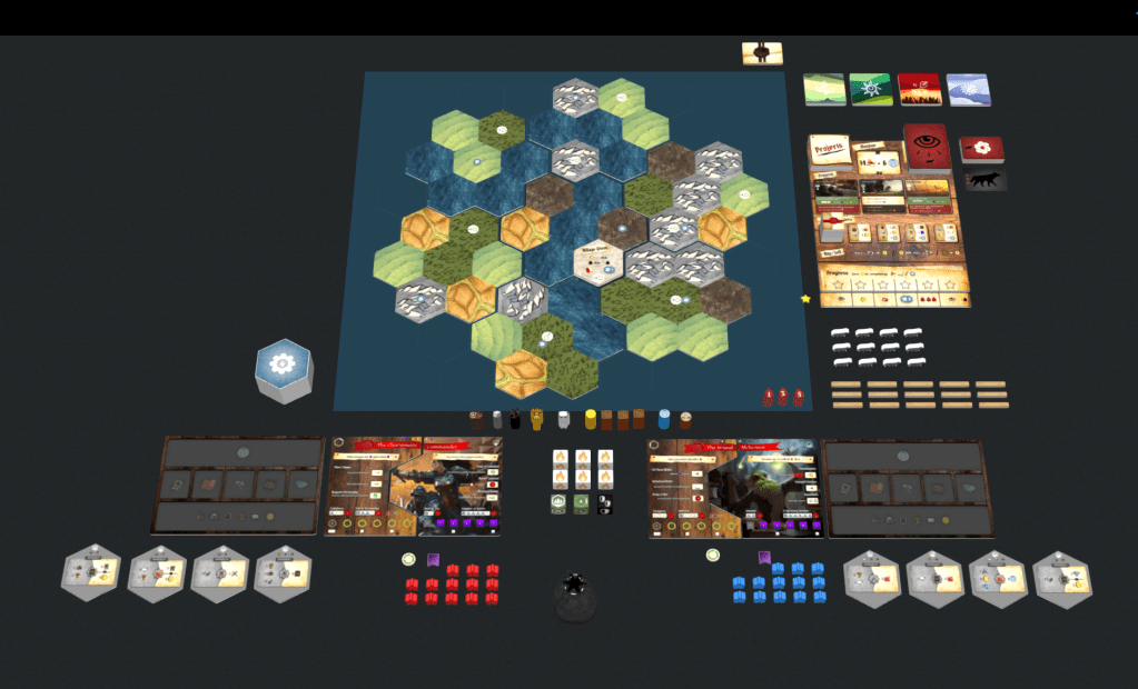 You are a mixed bag, but you’ll have to do! I’m sending you to a remote wilderness to lead in the establishment of a thriving settlement. It is imperative that we have a strong presence in the region to solidify our hold on the Northern Territory. With hard work, perseverance, and a bit of luck, the village will strengthen with each passing season, but so will the demands of the people and the threats from the hinterlands. You have one year to prove yourselves. Succeed and I'll consider your debts paid and grant you your own town charter. Fail? Well… let us pray that you don’t disappoint. ~ Duke Caravane IV --//-- Hinterlands is a cooperative, Euro-style, village-builder with an unreasonable amount of setup variability ensuring that every game presents a different puzzle with different threats, different missions, a different landscape, and a different combination of player powers. Work together, plan your turns wisely, and you just might be heroes after all!